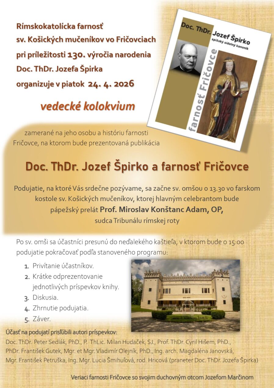 Dôležité Pozvánka na vedecké kolokvium spojené prezentáciou publikácie o Doc. ThDr. Jozefovi Špirkovi apr 18